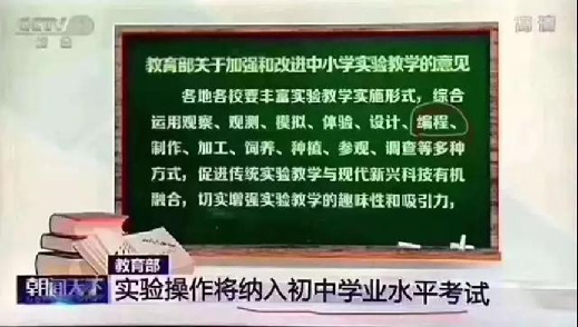 另外,从"三个纳入"(把学生实验操作情况和能力表现纳入综合素质评价;2023年前要将实验操作纳入初中学业水平考试,考试成绩纳入高中阶段学校招生录取依据;)可以看出国家对青少年编程学习的重视力度,各位家长要足够重视起来。