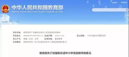 明确指出教育部制定中小学实验教学基本目录和操作指南。