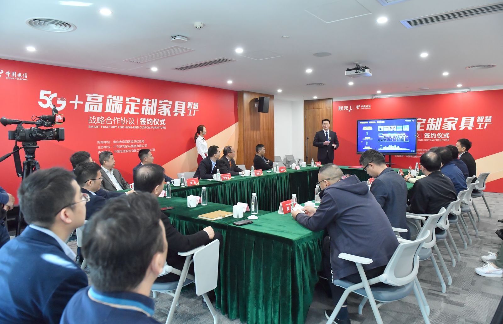 2月3日,在南海区、狮山镇领导及双方高管代表的见证下,联邦家私集团与中国电信佛山分公司正式签署5G技术应用战略合作协议,双方将本着“整合资源、聚合产业、合作创新、服务社会”原则,结合发展优势及经验,在5G技术、云计算、大数据、物联网、系统集成等方面的深度融合开展探索与技术创新,共建“5G+高端定制家具智慧工厂”。